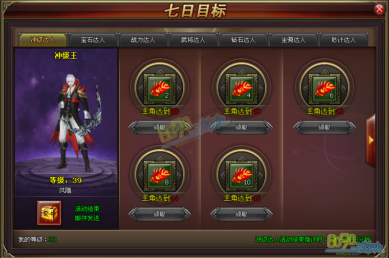 活动期间,玩家达到相应等级,即可领取 海量礼券。活动结束时,占据等级排行第一的玩家更有机会获得 30级本职业神级武器箱 哦。