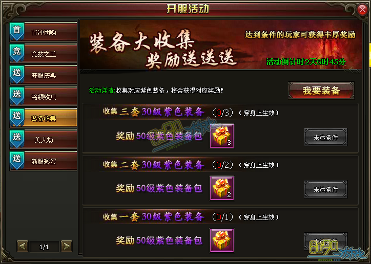 装备大收集,奖励送送送。活动期间,收集对应紫色装备,将会获得对应奖励哦!