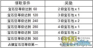 活动期间,玩家达到相应宝石总等级,即可领取 高级宝石 。活动结束时,占据宝石排行第一的玩家更有机会获得 七彩宝石 哦。