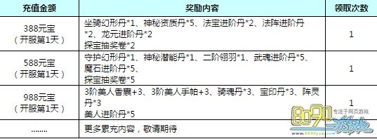 【活动内容】活动期间玩家累充达到要求,即可在奖励大厅中领取丰厚奖励,奖励对当天进阶日系统。