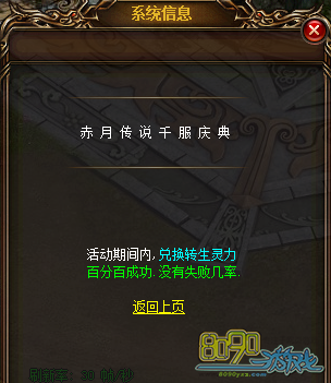 活动内容:活动期间内,兑换转生灵力百分百成功.没有失败几率