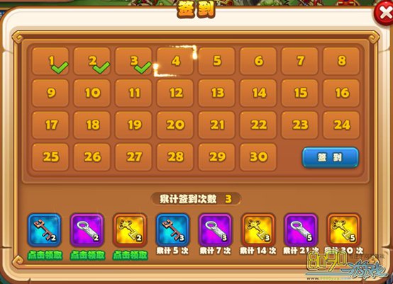 简介:玩家达到签到次数可领取下方的奖励。