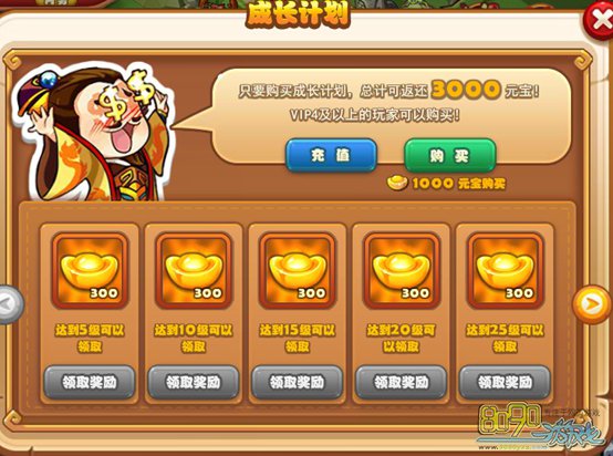简介:vip4以上玩家可购买,购买后每达到指定级别可以领取对应奖励