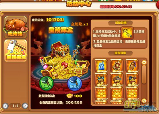 简介:玩家花费元宝抽奖的一个系统,每天最高200次,可挖出各类道具