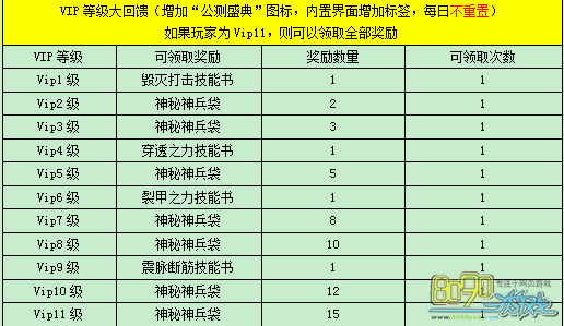 活动内容:根据VIP等级,可以领取各类奖励,VIP等级越高,领取到的奖励越多,活动期间提升VIP等级也可以领取更多奖励。