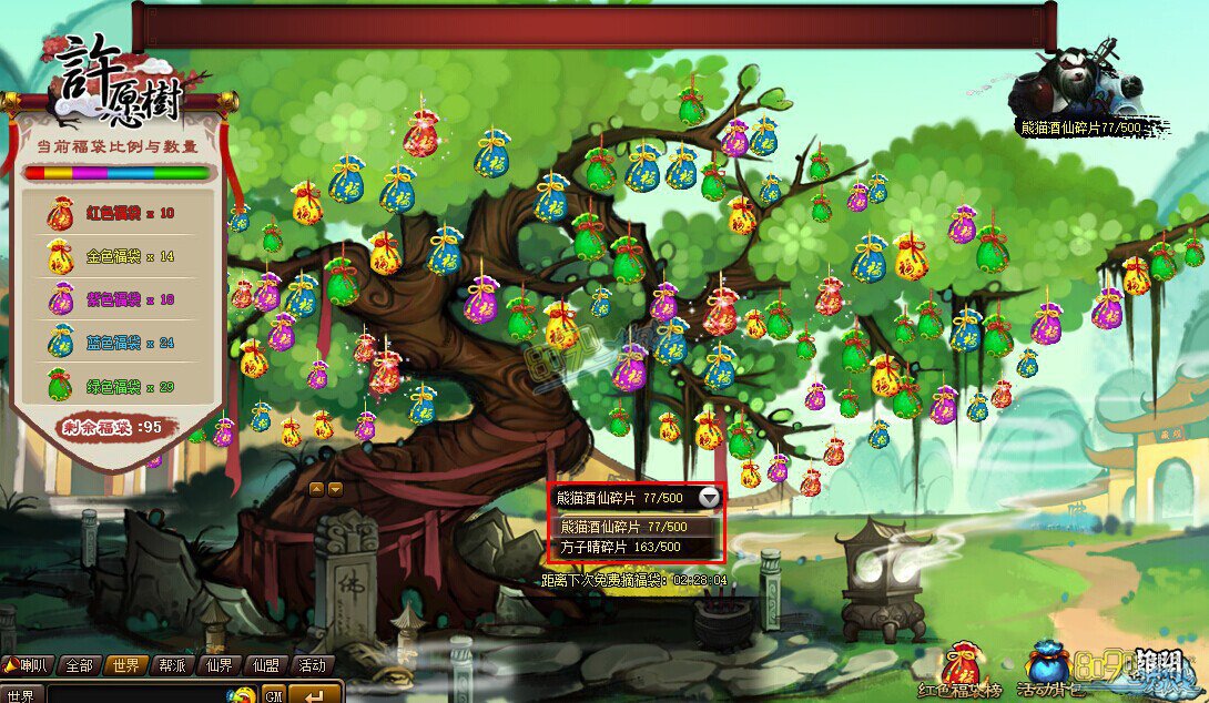 2、许愿树上共有100个不同品质的福袋,其中包括10个超级大奖红色福袋,奖励根据福袋品质不同也会有所不同