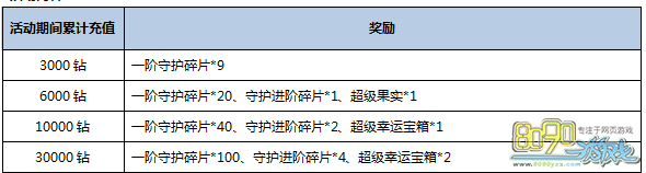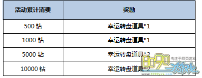 活动期间累计充满3000钻石即可获得一次超级抽奖大转盘参与次数(1次)