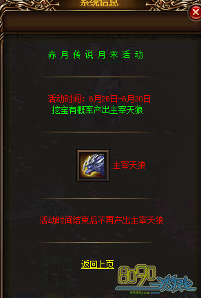 【活动内容】活动期间挖宝有概率产出主宰天狼