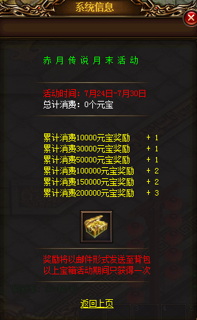 【活动内容】在活动期间内消费到指定金额,即可获得高级龙王技能宝箱(只可获得一次)