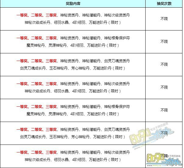 2、玩家每次抽取奖品时会有5元宝累计作为奖池奖金。