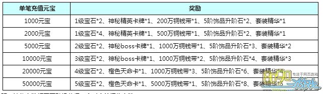 1、活动期间玩家单笔充值达到额度即可领取奖励。