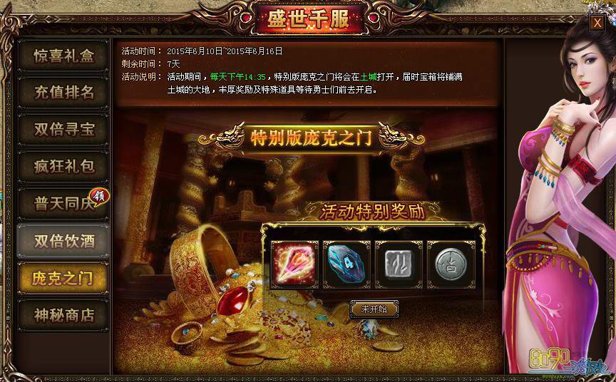 【活动内容】: 活动期间,每天下午14:35,特别版庞克之门将会在土城打开,届时宝箱将刷满土城的大地,丰厚奖励及特殊道具等待着勇士们前去开启!