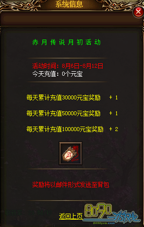 参与方式:玩家可打开右上角【节日活动】图标,或者在赤月皇城148,89【节日使者】处查看活动内容