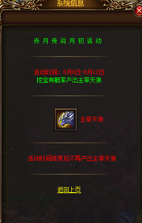 【活动内容】活动期间挖宝有概率产出主宰天狼