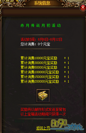 【活动内容】在活动期间内消费到指定金额,即可获得高级龙王技能宝箱(只可获得一次)