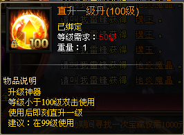 升级神器,超过100级以后使用可获得10亿经验!!!