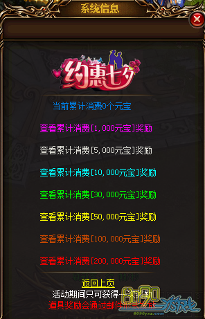 【活动内容】活动期间,累计消费一定数量的元宝即可获得大量奖励