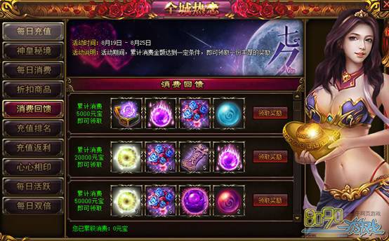 【活动说明】:,每日消费金额达到5000、30000、50000即可获得一份奖励