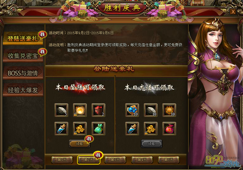搜索"8090网页游戏"活动一、登陆送豪礼