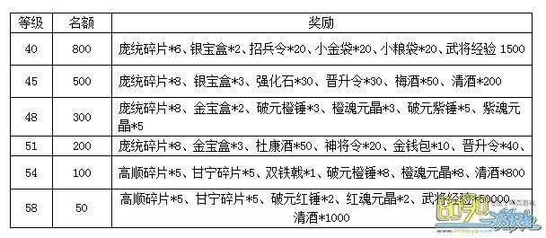 活动内容:活动期间内,玩家达到对应级别,且该级别的剩余可领取礼包不为0时,即可领取奖励!
