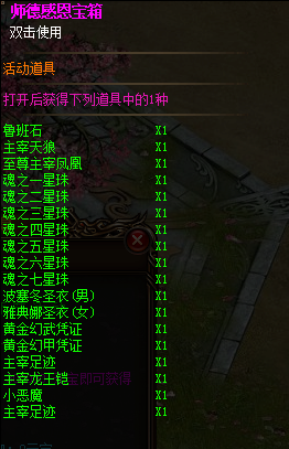 【活动内容】在活动期间内累计充值30w元宝可获得师德感恩宝箱1个(只可获得一次)
