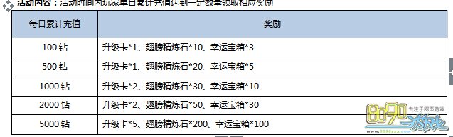 活动内容:活动时间内玩家单日累计充值达到一定数量领取相应奖励
