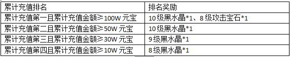 活动内容:活动期间,累计充值排名前4的玩家在活动结束时可获得相应的充值排名豪礼!奖励为活动结束后邮件发放,请留意查收!