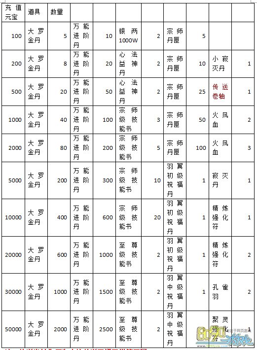 5、 开启宝箱可能获得如下珍稀物品:聚灵强化符,兽纹提品石,青鳞提品石, 红色万古不灭, 红色三花聚顶,红色大道稀音,红色剑技无双,橙色天崩地裂,橙色洪荒之力,神兵初级祝福丹,羽翼初级祝福丹,神弓初级祝福丹,神魔盾初级祝福丹 ,披风初级祝福丹,第二元神初级祝福丹,坐骑初级祝福丹, 灵兽初级祝福丹,至尊级技能书, 5级特殊耀石袋, 八大系统幻化丹,天仙坐骑装备箱,天仙灵兽宝匣;