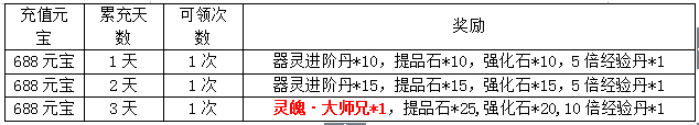活动内容:玩家可以每日连续充值获得精美豪礼,连续充值天数越多奖励则越豪华哟!