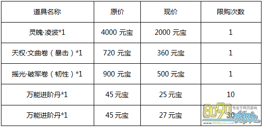 100元宝 2天1次4阶桐梧剑穗,万能进阶丹*10,强化石*10,5倍宝典*1