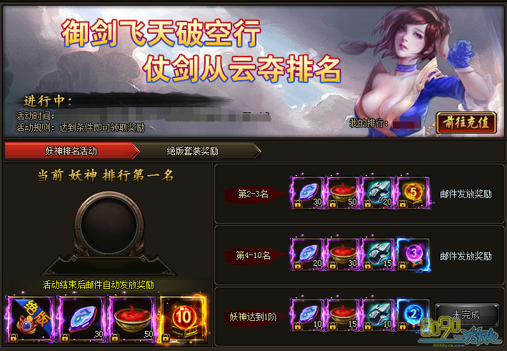 第二名~第三名奖励:提品石*30,妖神灵血*50,强化石*20,五倍经验丹*1