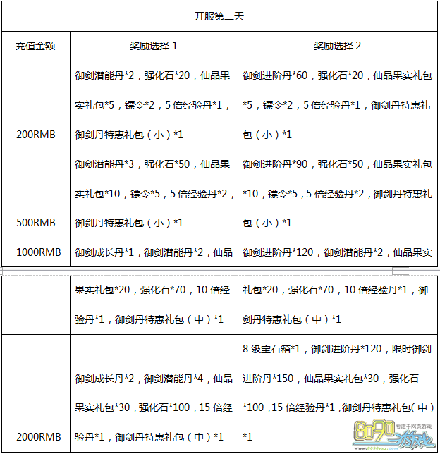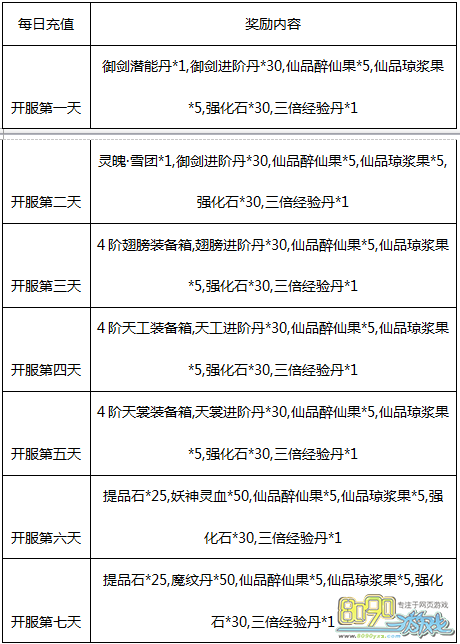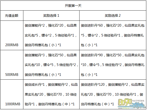 阳光普照奖(御剑达到二阶):提品石*10,御剑进阶丹*15,强化石*10,双倍经验丹*1