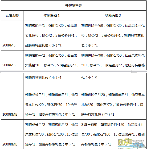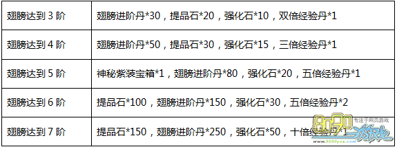 阳光普照奖(翅膀达到二阶):提品石*10,翅膀进阶丹*15,强化石*10,双倍经验丹*1