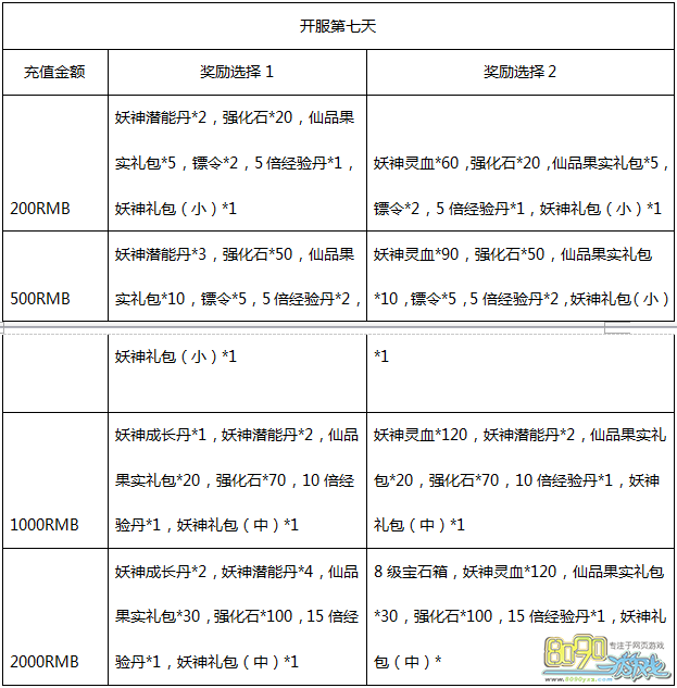 阳光普照奖(妖神达到一阶):提品石*10,妖神灵血*15,强化石*10,双倍经验丹*1