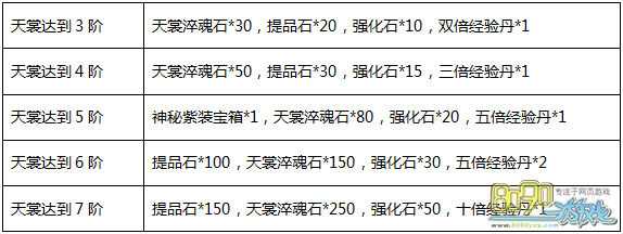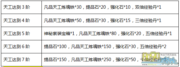 阳光普照奖(天工达到二阶):提品石*10,凡品天工炼魂铁*15,强化石*10,双倍经验丹*1