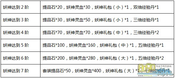 活动内容:在活动时间内凡是玩家妖神达到了规定阶数即可活动丰厚的大礼作为您的回报哦。