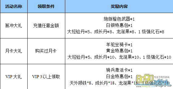 【活动内容】开服3天开启,达到指定条件,VIP玩家即可领取相应奖励