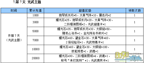 【活动时间】开服第7天开启,第7日23点59分59秒结算榜单,开始领取奖励