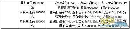 活动内容:活动期间,每三日更新一轮累充活动,充值满指定金额可获得丰厚的奖励回馈。详情如下