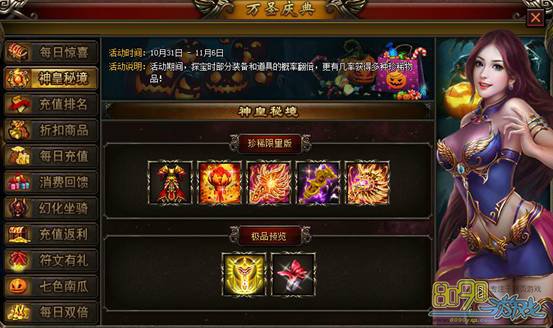 【活动说明】:活动期间,探宝时部分装备和道具的概率翻倍,有几率获得多种珍稀道具!