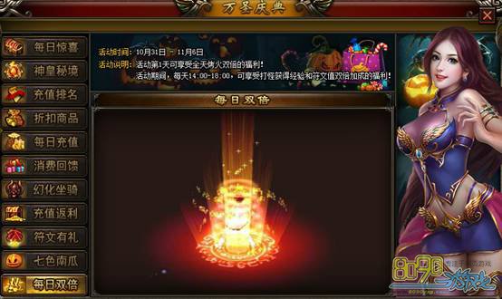【活动内容】:活动期间,每天14:00 – 18:00,可享受打怪获得经验和符文值双倍加成的福利!活动第1天,更可享受全天烤火双倍!