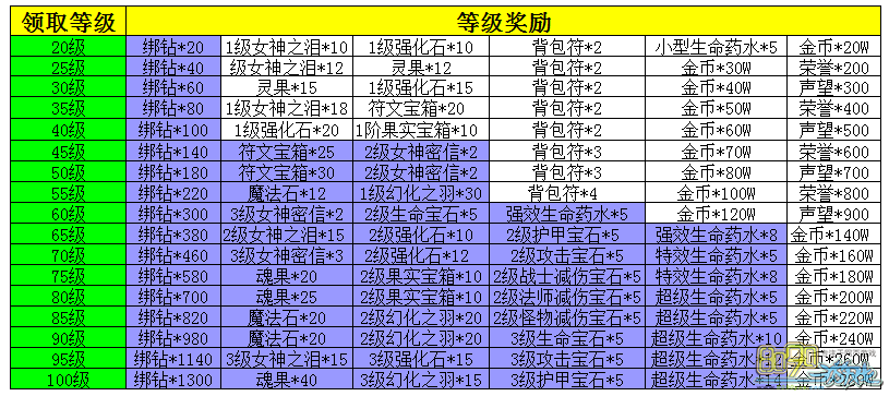 【活动内容】角色达到一定等级均可点击右上“等级礼包”图标免费领取丰厚的等级大礼包。每种等级礼包花费少量钻石还