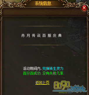 活动内容:活动期间内,兑换转生灵力百分百成功.没有失败几率