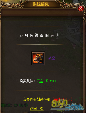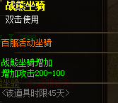 活动内容:活动期间内可找活动使者花费2888元宝购买1只绝版战熊坐骑