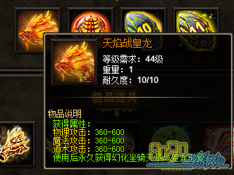【活动内容】: 活动前3天,极品装备、道具的寻宝概率提高2倍!并有极品幻灵-三生镇魂塔、天焰战皇龙等一系列特殊物品,活动结束后将不在产出地炎魔晶、橙色装备以及本次活动的特殊道具!
