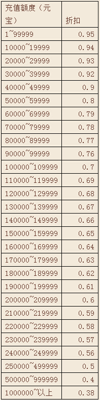 相应折扣,请见游戏中。充值满1万rmb即可达3.8折大优惠。