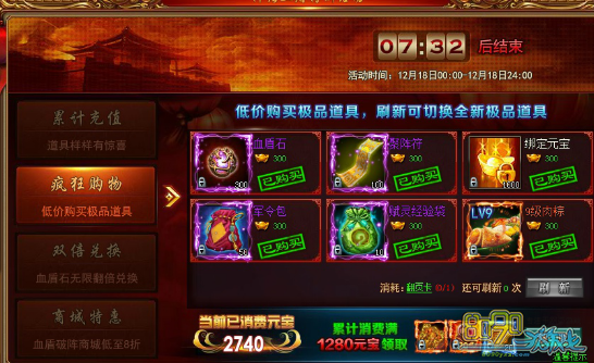 活动期间,玩家可以在“优惠面板”中使用低价购买所有道具,每种道具仅可购买一次,在活动面板中,可通过刷新进行重新购买道具