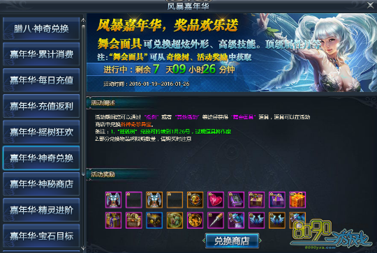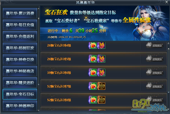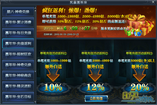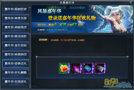 搜索"8090网页游戏"活动一:嘉年华·登录送大礼