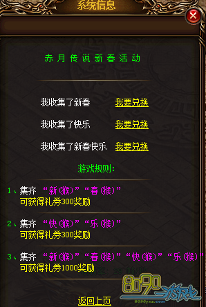 参与方式:玩家可打开右上角【节日活动】图标,或者在赤月皇城148,89【节日使者】处查看活动内容