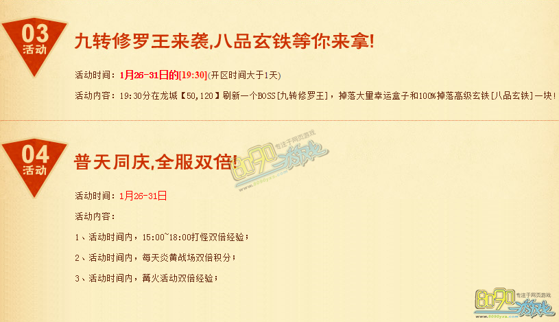• 傲视遮天1月26日-1月31日真情大回馈 十品玄铁重磅出击
